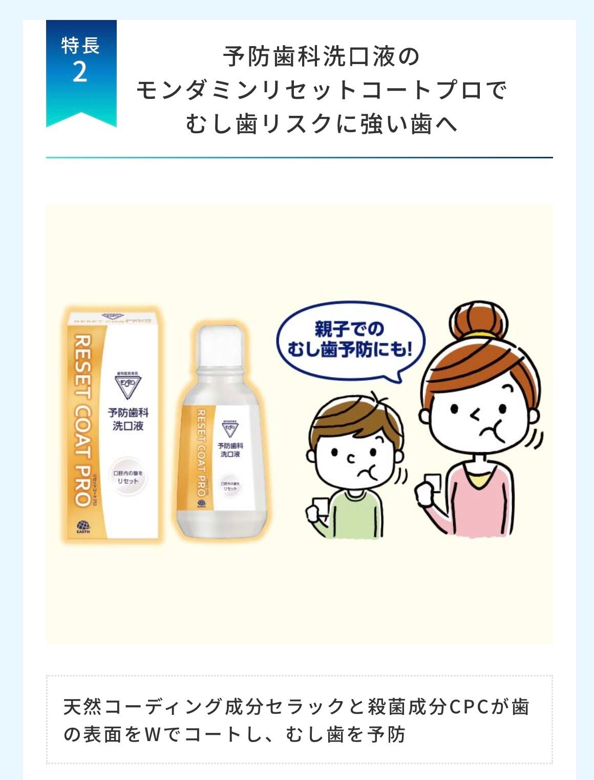 ◯天然コーディング成分セラックと殺菌成分CPCが歯の表面をWでコートし、むし歯を予防